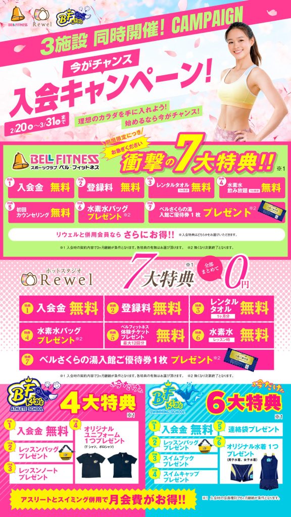 ベルフィットネスでもお得な7大特典がつきます!新生活と共にベルフィットネスで楽しいフィットネスライフを過ごしませんか?